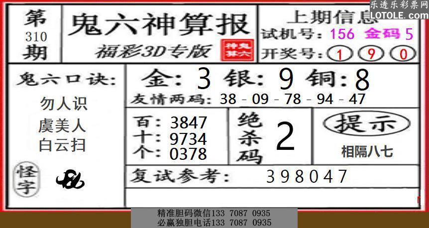 310鬼六神算乐透乐 第一时间发布