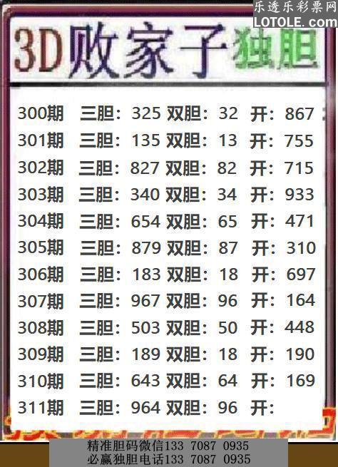 311败家子独胆乐透乐 第一时间发布