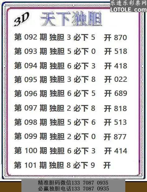 01天下独胆乐透乐 第一时间发布
