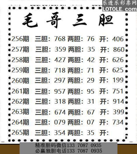 265毛哥三胆乐透乐 第一时间发布