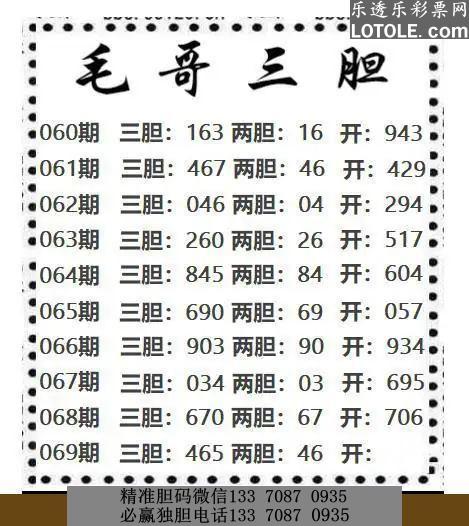 69毛哥三胆乐透乐 第一时间发布