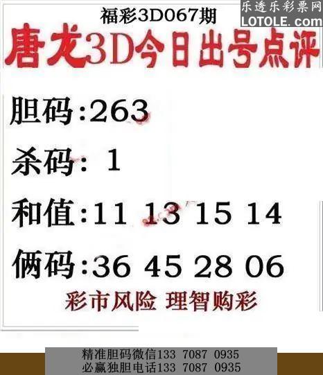 67唐龙点评乐透乐 第一时间发布