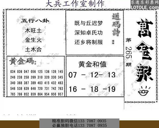 265大兵全版乐透乐 第一时间发布