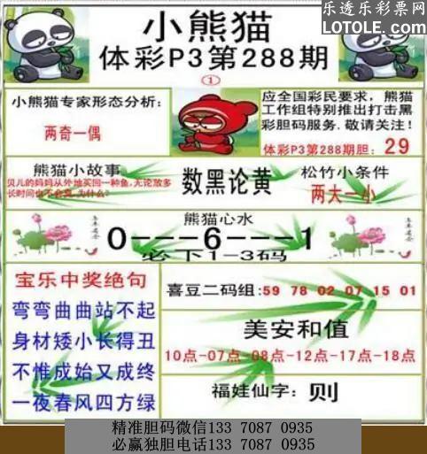 标题: 288小熊猫乐透乐 第一时间发布