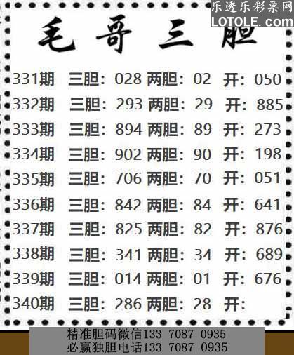 340毛哥三胆乐透乐 第一时间发布