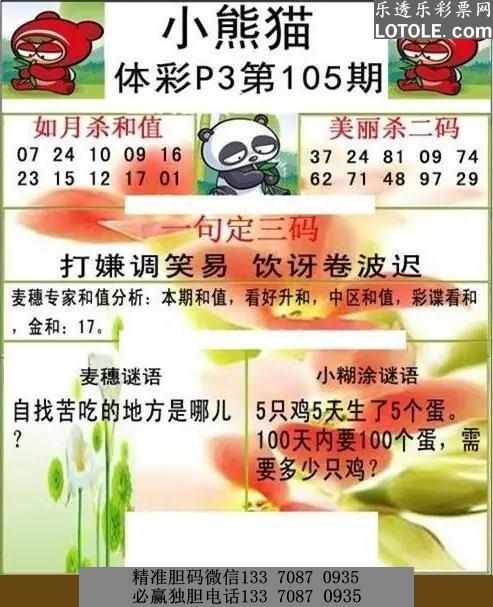 标题: 105小熊猫乐透乐 第一时间发布